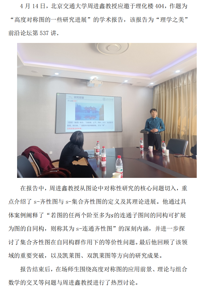 周进鑫教授做客“理学之美”前沿论坛第五百三十七讲